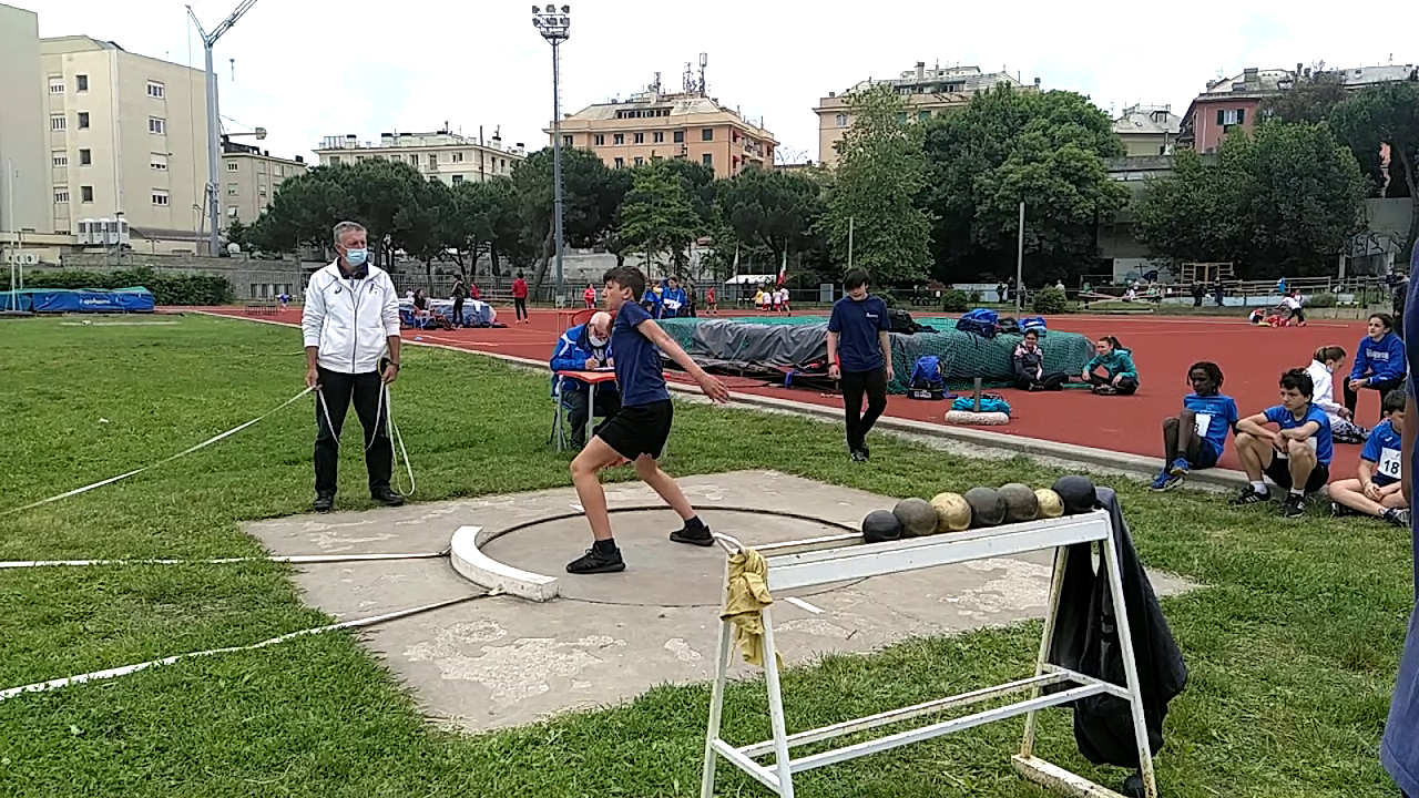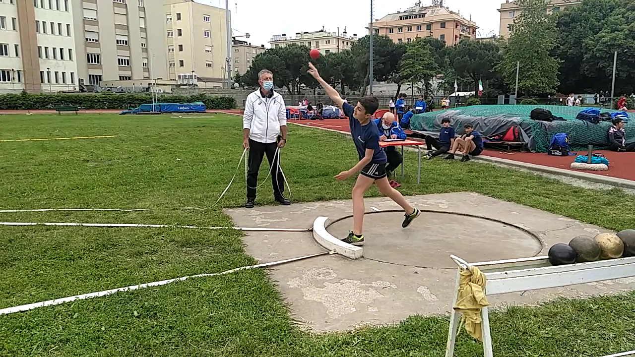 Tra i ragazzi grande esordio di Alessandro! Hanno cominciato poco dopo le ragazze dal getto del peso: non male Francesco che, nonostante in allenamento non l’avesse provato molte volte, è riuscito al secondo lancio a piazzare una buona misura (8.07mt); bene anche Alessandro (7.40mt) ma con ampio margine di miglioramento, Samu 6.64 e Brian 6.32 mt.