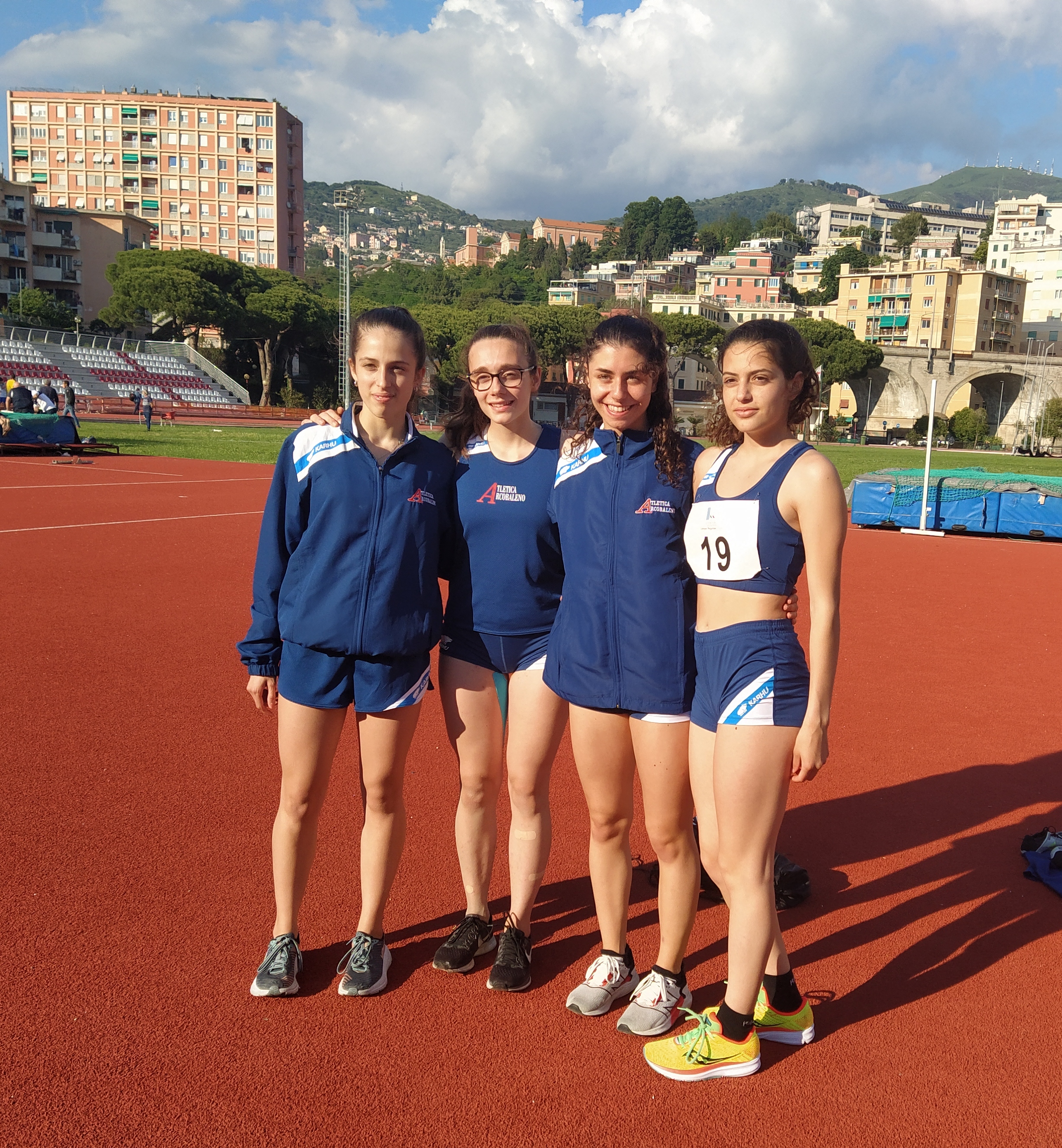1° 4×400 allieve che ha visto correre Martina, alla sua prima esperienza con le compagne di squadra Arcobaleno (4:19:74)
