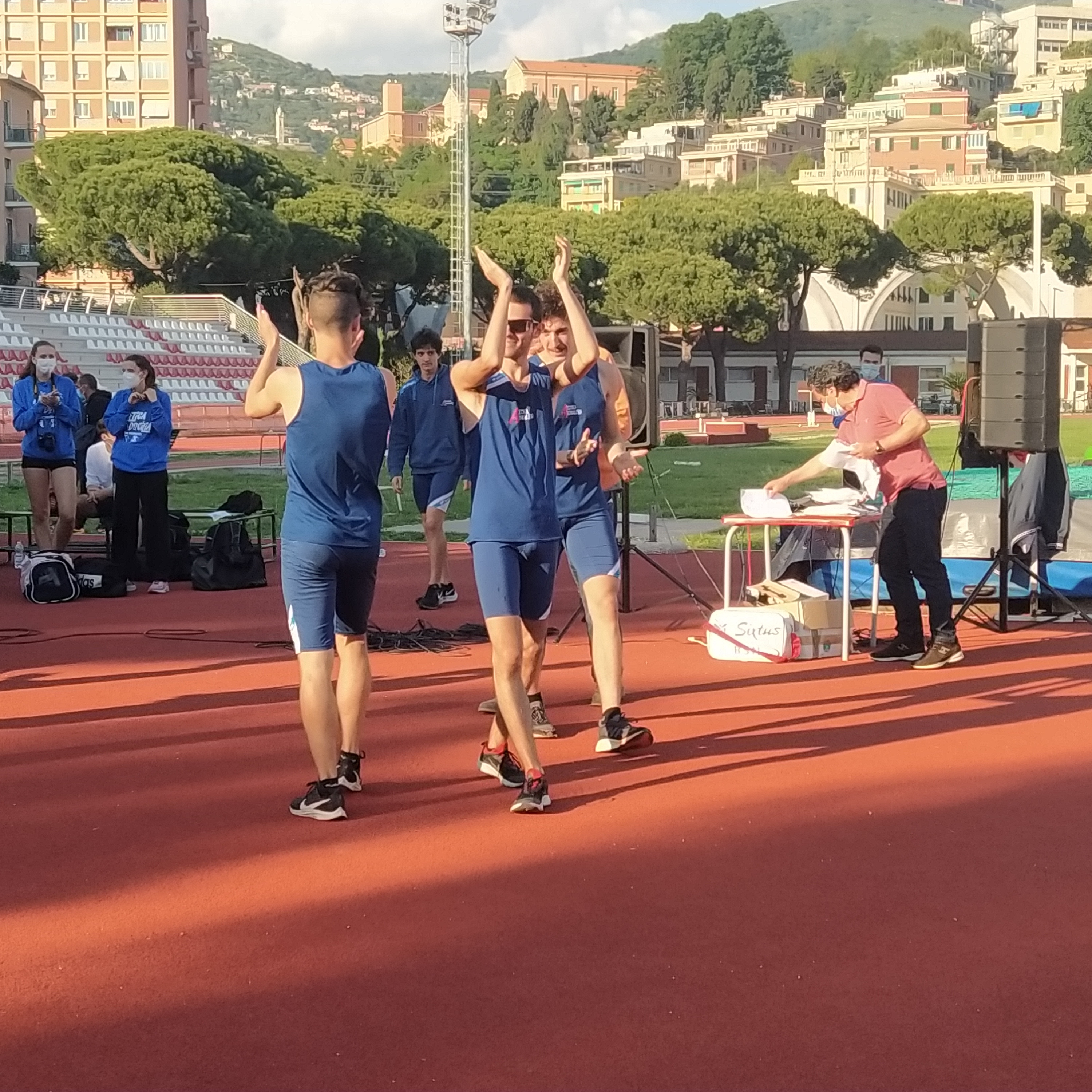 Medaglia d’argento per la staffetta 4×100 maschile che ha visto correre insieme Mirko e il suo coach Adreas e siglare il nuovo record sociale assoluti (43″13)