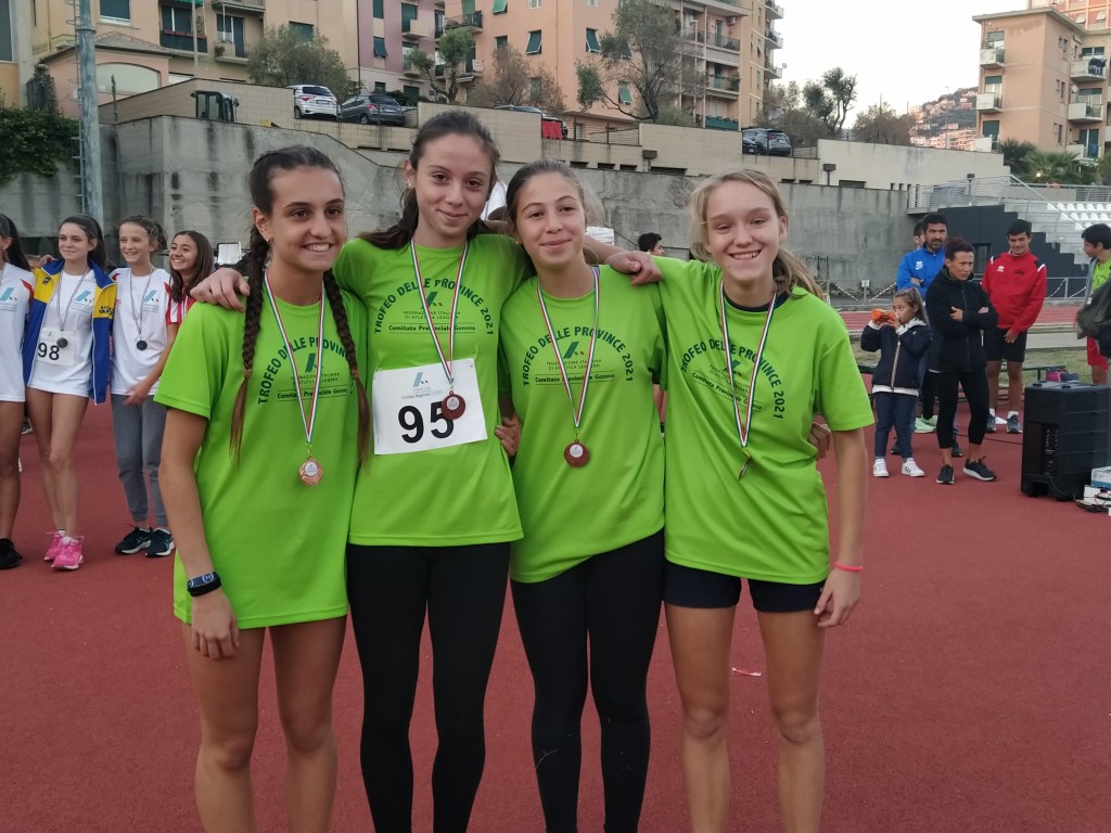 Per chiudere in bellezza, Daria ed Alice hanno preso parte alla staffetta svedese (100-200-300-400) dove, correndo rispettivamente la prima e la seconda frazione, insieme alle altre compagne si sono guadagnate un’altra bella medaglia salendo sul terzo gradino del podio.