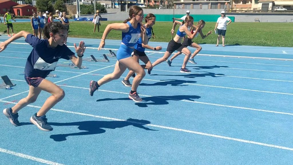 Le fanciulle della nostra società impegnate in questa tipologia, che hanno cominciato subito con la gara di velocità, sono Safira, Gaia e Carene. Se sui blocchi sono sembrate un po’ timide, alla seconda prova, il salto in alto, si sono sciolte: seconda Gaia con la misura di 1.30, quarta Carene (1.25) ed ottava Safira (1.10). Nel getto del peso è sempre Gaia ad occupare il secondo gradino del podio, sparando l’attrezzo a 7.95, Safira sigla la miglior misura a 6.08 e Carene a 5.47. L’ultima prova per tutte è la resistenza, i 600 metri: ancora una volta Gaia si rende protagonista di una gara molto avvincente e chiude in terza posizione in 1:59:20, Safira fa fermare il crono a 2:23:57… personale per lei!!!! Bene anche Carene, che taglia il traguardo poco dopo!! Brave ragazze!