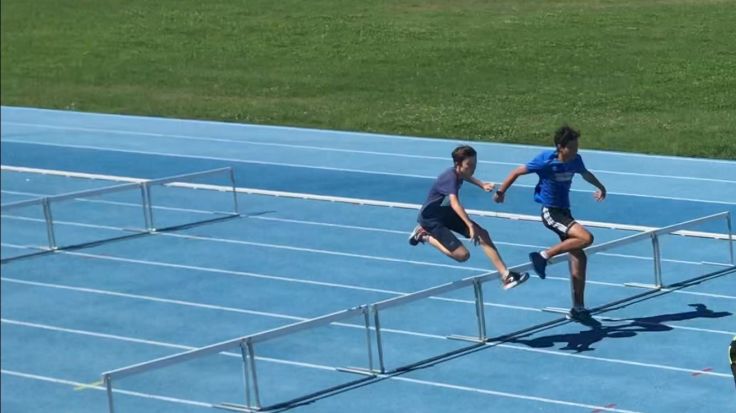 Lorenzo si distingue subito sui 60hs, imponendosi dall’inizio e tagliando il traguardo per primo (10.03 che gli vale il personale)! Buona prova anche di Edoardo e Mattia al loro esordio in maglia Athle Team! La seconda prova per loro è il salto in lungo: Lorenzo, impegnato per la prima volta in questa specialità, “mette da subito i puntini sulle i” piazzando un ottimo 4.65 già alla prima prova ed imponendosi al vertice della classifica sin dall’inizio, scavalcato solo all’ultimo per soli 2cm dall’atleta del Don Bosco. Bravo! Bene anche Mattia: 3.58 con un po’ di centimetri lasciati alla pedana dimostra di aver un buon potenziale! Ne esce un po’ insoddisfatto Edo, che litiga con la rincorsa ma, aggiustando qualcosina potrà fare sicuramente molto meglio!! L’ultima prova, prima del 600 finale è il getto del peso: 8.65 di Lorenzo, 6.92 di Mattia e 5.71 Edo. Un po’ di fatica si fa sentire sul finale di questa giornata e le forze mancano un po’. Nonostante questo, tutti e tre i nostri ragazzi non si possono recriminare nulla perchè hanno dato il massimo fino all’ultimo! La classifica finale del tetrathlon vede Lorenzo al 4° posto con 2052 punti, 8° Mattia e 9° Edoardo! Grandi!!!!