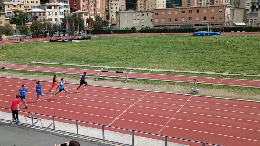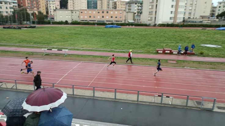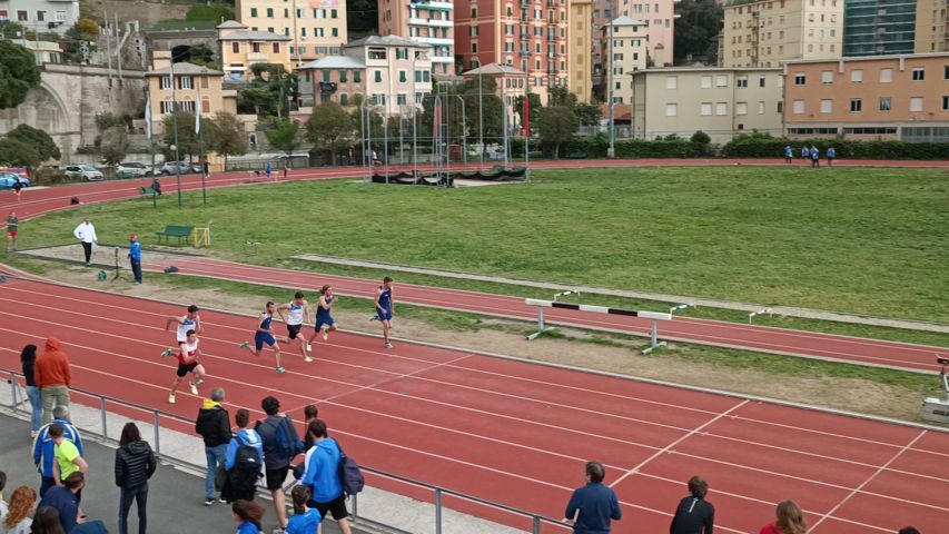 I nostri cadetti erano tutti schierati già nella prima serie: stavolta è Enzo ad aggiudicarsi la vittoria con l’ottimo tempo di 38″68, Francesco corre una buonissima prova che gli vale il PB (40″97) e un 5° posto in classifica, migliorando così il tempo siglato a Boissano ad inizio aprile, bravissimo anche Brian che con 43″97 distrugge il suo accredito e si classifica in 13° posizione!!!