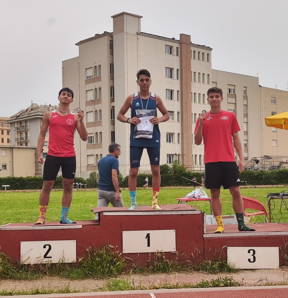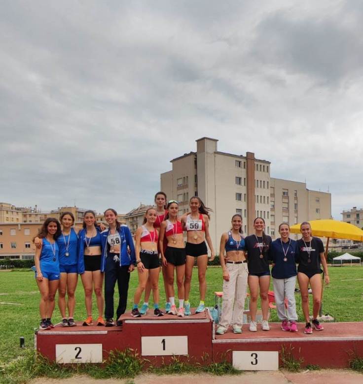 A chiudere questi due giorni di gare arrivano altri due podi nelle staffette 4×400: medaglia di bronzo per le fanciulle Martina, Lisa, Giulia e Letizia, formazione che a Luglio darà battaglia ai Campionati Italiani di categoria a Molfetta.