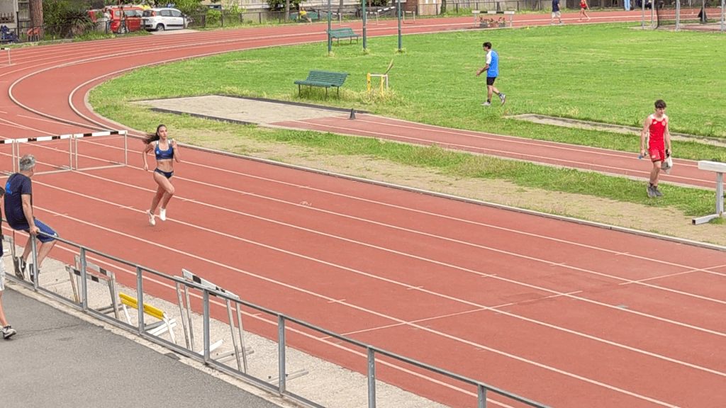 In contemporanea sono partiti i 200 metri che hanno visto ai blocchi di partenza Letizia, protagonista di un’altra splendida gara dopo quella di ieri. Purtroppo il suo risultato non è omologabile per un “guasto tecnico” ma il cronometro non mente: 27″49, che le sarebbe valso il terzo gradino del podio! Davvero niente male! Avrà modo di dire la sua a breve anche su questa distanza!