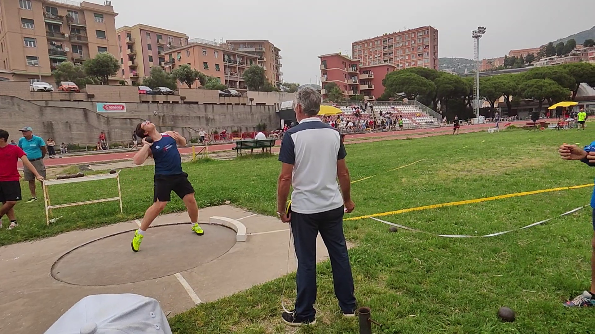 Nella pedana del peso abbiamo Riki che, nonostante qualche dolorino alla schiena che poi lo costringerà a desistere, scaglia il suo attrezzo a 10.62mt concludendo quarto in classifica di categoria.